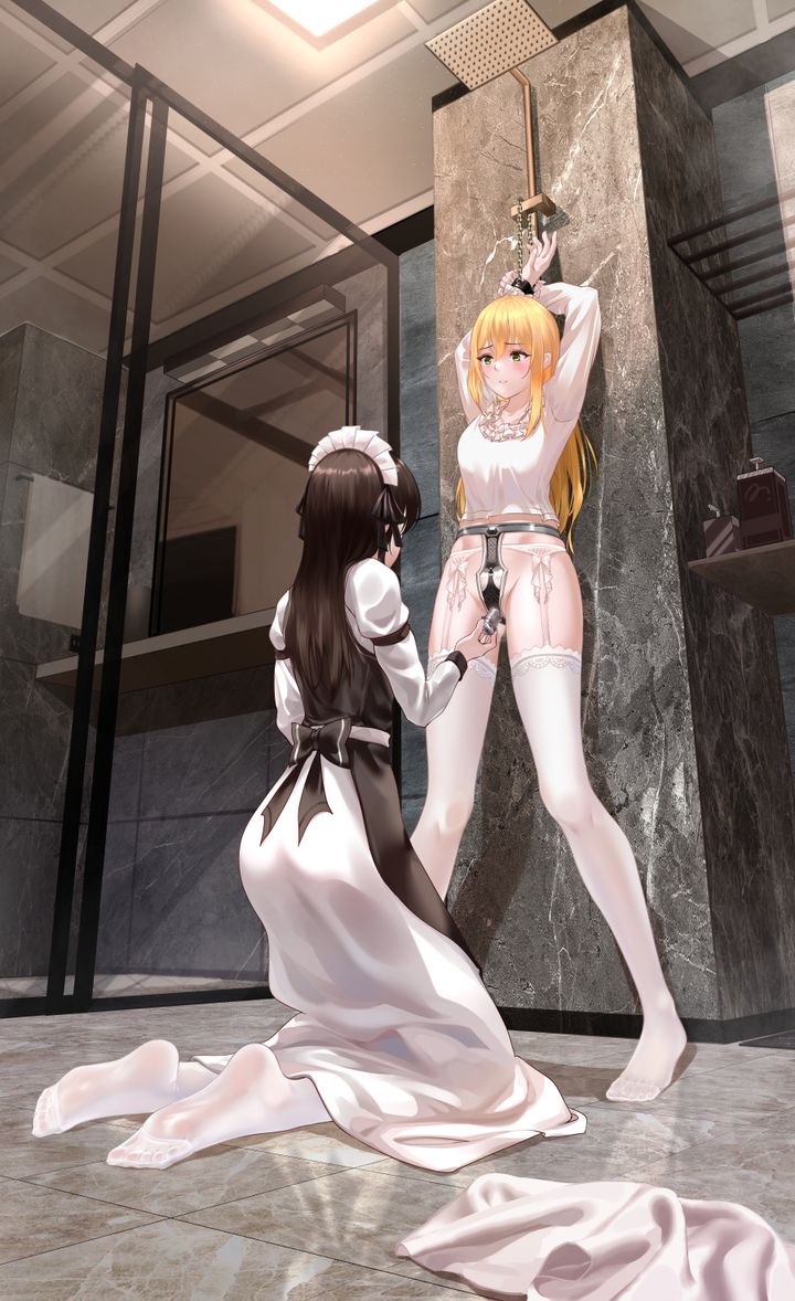 百合子恋恋不舍地移开了嘴唇,我的嘴里依旧残存着百合子的甜味,只见百合子握住我的手腕,将我铐在早已准备好固定在墙上的镣铐中,此时我才发现,百合子颈间戴着项链不是别的东西,正是贞操带的钥匙。可我被百合子这般玩弄着,真的有机会夺走贞操带的钥匙吗,自己的身体竟早已迎合着自己的女仆,任由其亲吻和玩弄,推到浴室的墙角里铐起来,然后任由百合子摆布。